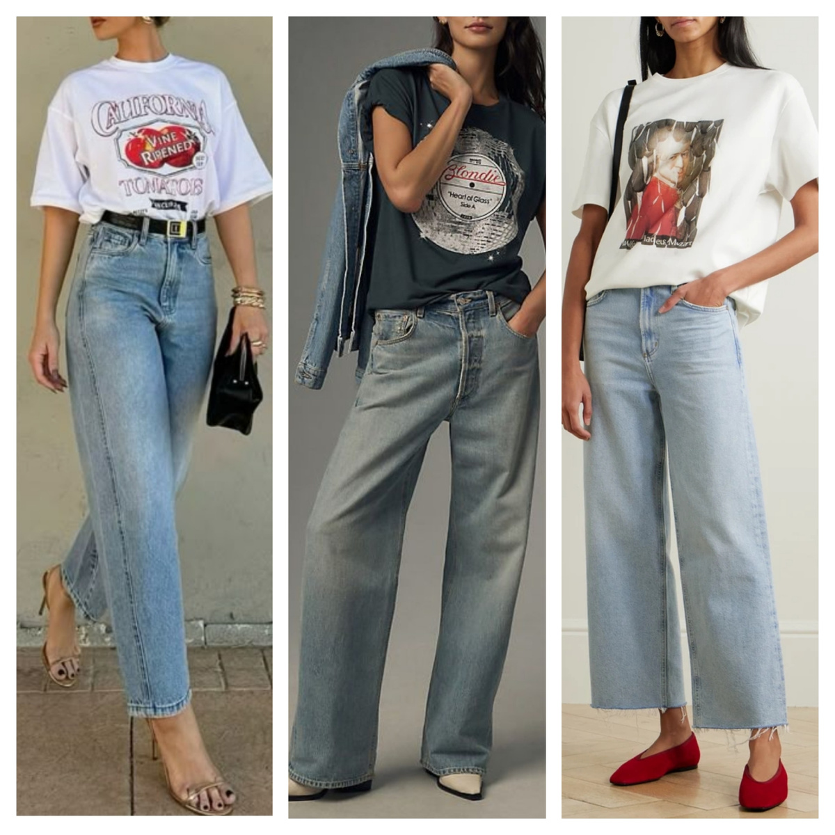 Портреты, крупные надписи, сюжетные рисунки и логотипы сейчас находятся на пике популярности. Одна такая футболка способна значительно повысить градус стиля даже самого простого и нейтрального комплекта. Мы можем сочетать её с джинсами и женственными юбками, спортивными брюками и трениками, а также с палаццо и бермудами.