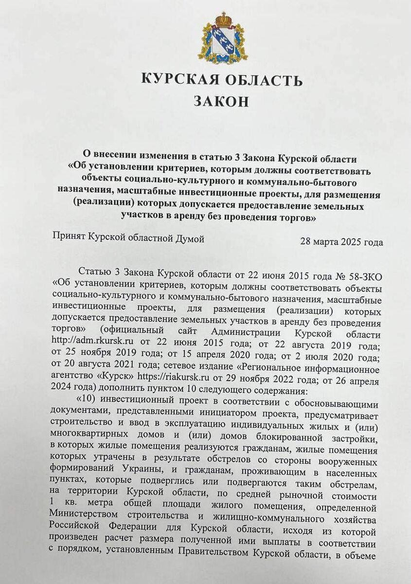 В Курской области вступает в силу новый закон, направленный на поддержку граждан, потерявших жилье из-за обстрелов, а также на защиту прав обманутых дольщиков.