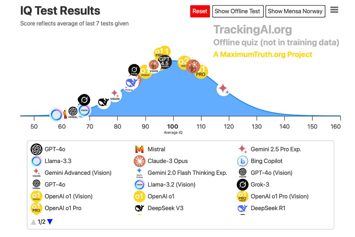 Gemini 2.5 Pro набрала 118 баллов IQ Это достаточно значительный отрыв от предыдущих результатов: для сравнения, o1-pro набирает 110, Claude 3.7 – 107, o3-mini – 104, GPT-4.5 и o1 – 97. Средний результат человека – 100. Вопросов из датасета нет в интернете (по крайней мере, так говорит создатель). Все тесты проводит единственный человек – журналист Максим Лотт. Кстати, он также занимается тем, что трекает политические предубеждения моделек. Выходит довольно интересно (картинка 3). INCUBE.AI | ПОДПИСАТЬСЯ