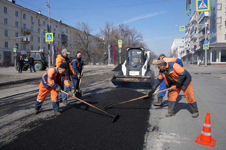 Ремонт ульяновских дорог горячим асфальтом выполнили уже на площади в тысячу квадратных метров