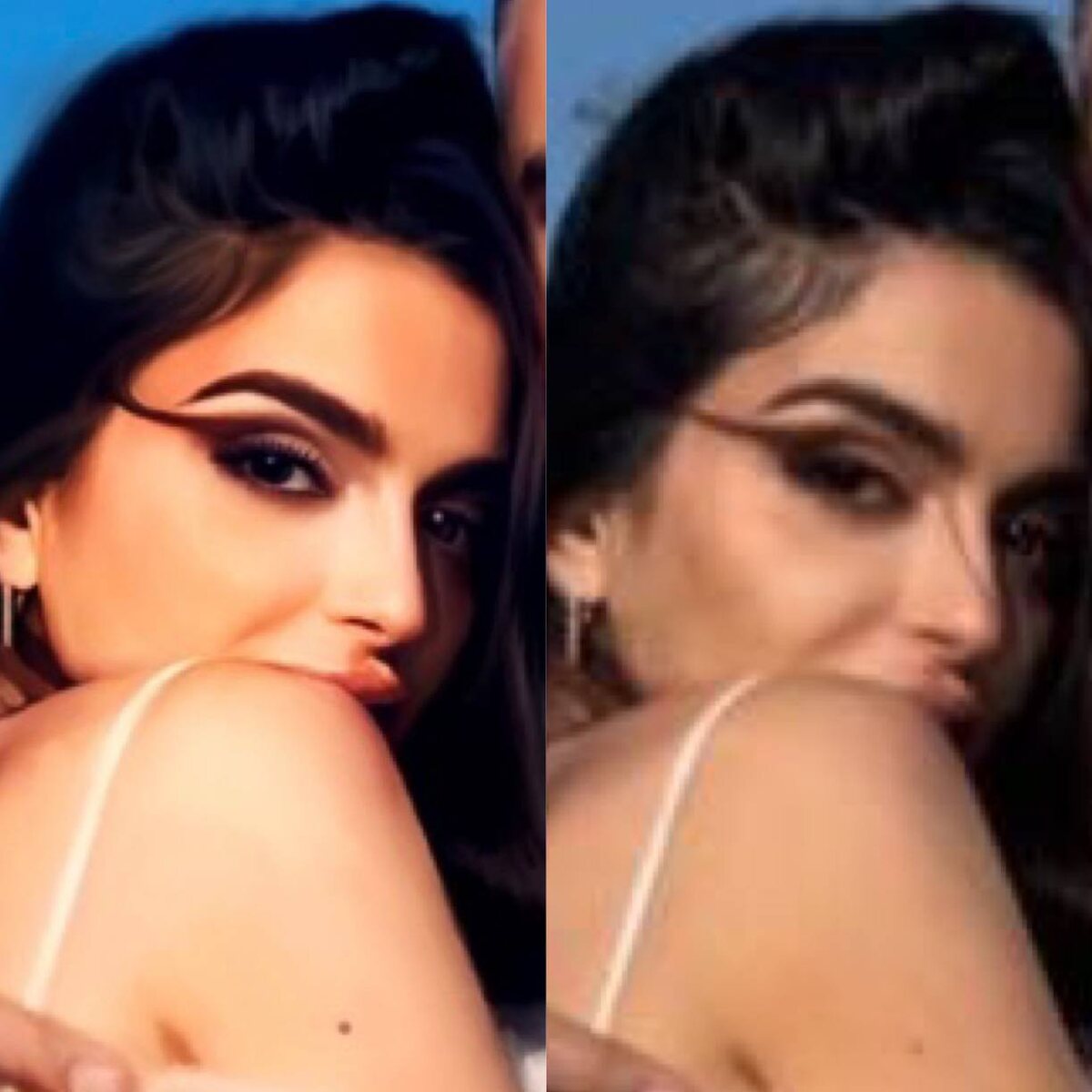 Цифровой портрет, напечатанный на холсте 50/50 и исходная фотография.