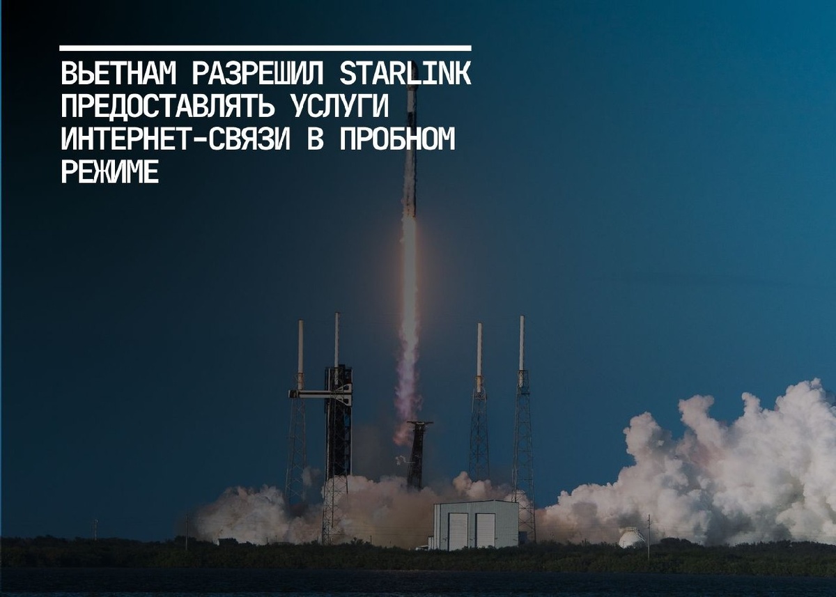 Вьетнам разрешил Starlink предоставлять услуги интернет-связи в пробном режиме до 2030 года с абонентской базой на 600 000 человек. Это стало еще одним шагом в расширении сети Starlink по всей Азии, хотя пока неясно, подала ли SpaceX заявку на предоставление услуг официально.