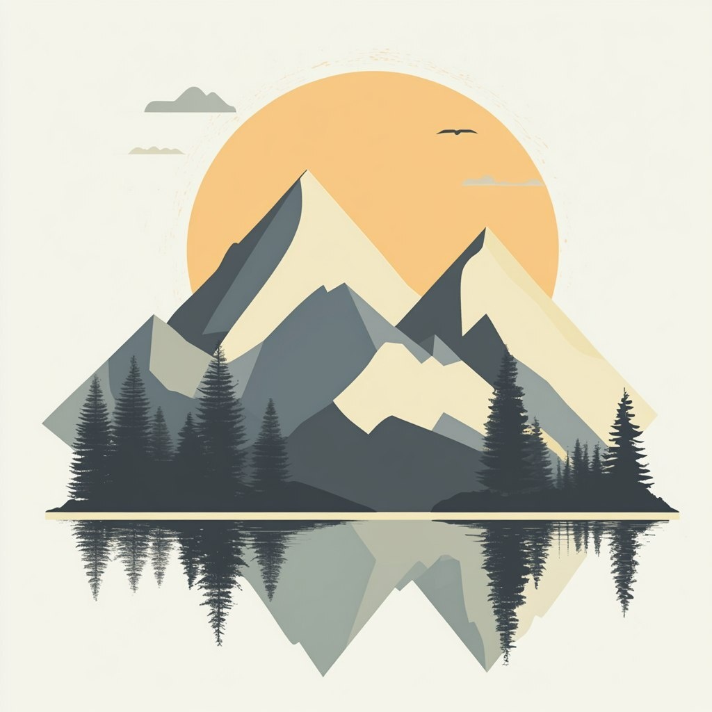 Создано на основе запроса: a vector image showing sky mountains trees in geometric shapes minimal shapes