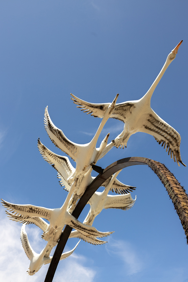 она называлась до момента заселения бывшими жителями Стрелки — района старого Свирска, попавшего в зону затопления после запуска Братской ГЭС. В настоящее время на горе расположен жилой поселок Микрорайон. Семь белокрылых лебедей соединены в единую прямую линию и имеют общую сложную конструкцию. Монумент символизирует устремленность вперед, к достижению поставленных целей и является олицетворением любви, верности и мира. Птицы словно зовут за собой. Они указывают путь и вдохновляют новые поколения на дальнейшие свершения. Число лебедей, семь — тоже не случайность. Семерка считается уникальным и мощным числом во многих культурах и духовных традициях, символизирует совершенство, завершенность,