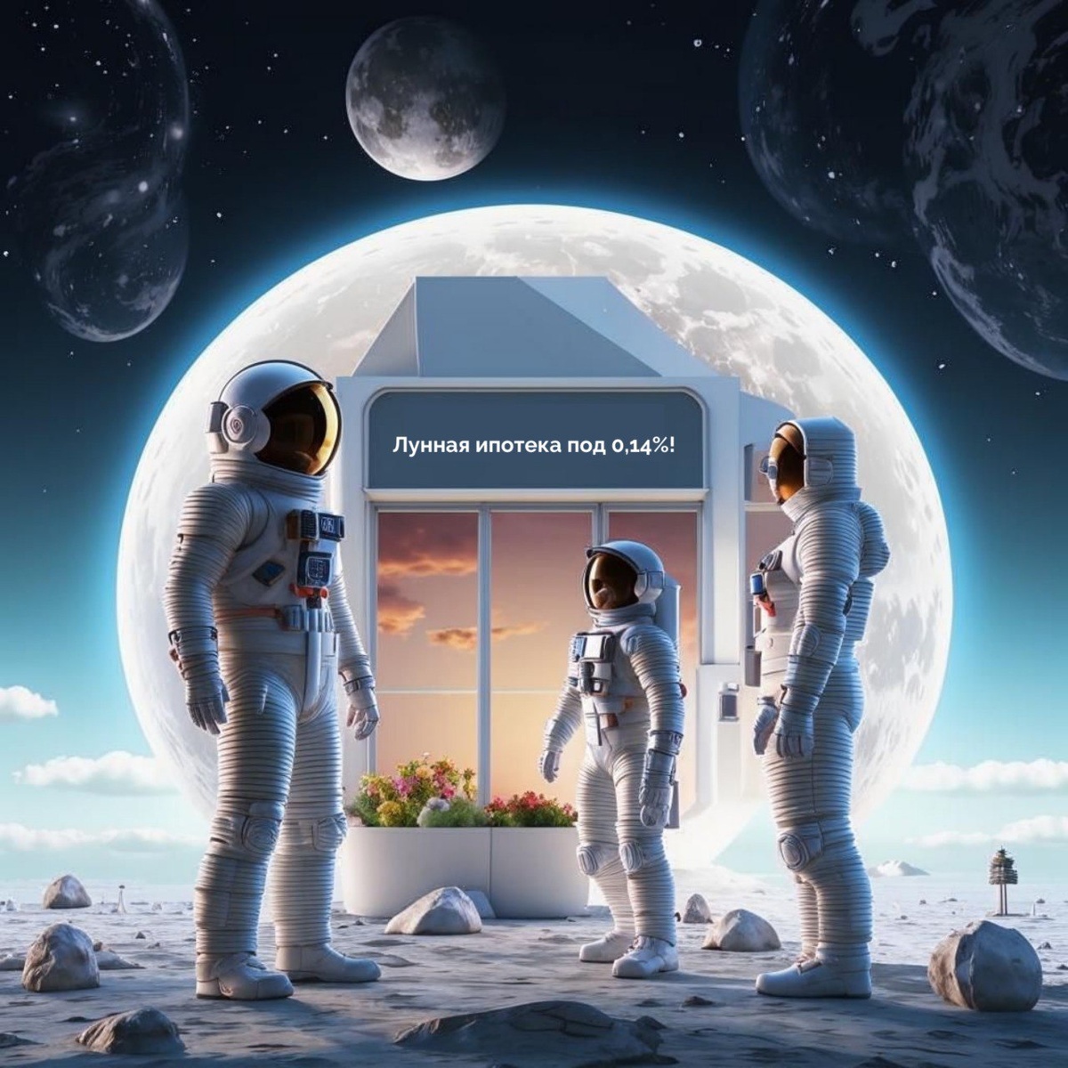 Друзья, у нас космические новости! 🚀 Спешим сообщить, что РКС Девелопмент переходит на новый уровень – теперь мы строим дома на Луне! 🌕✨ ☑️ Бесплатная доставка строительных материалов (ракетой) ☑️ Лунная ипотека под 0,14% годовых ☑️ Панорамные виды на Землю из каждого окна Первые 10 покупателей получат в подарок скафандр! 👩🚀 P.S. Шутки шутками, но на земле у нас тоже есть отличные проекты! 😉 Проверяйте акции – некоторые скиды действительно космические! 🚀