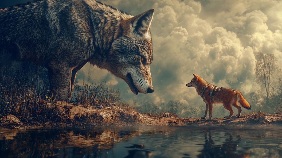 Создано на основе запроса: Photo sighting of an Elephant sized menacing Coyote --- Автоперевод: Фотография визита угрожающего койота размером с слона Как тебе вариант? 🤔 https://dzen.ru/id/65c0c65c86e4f837c27b24d7 #ИИ #AI #нейросеть #midjourney #art