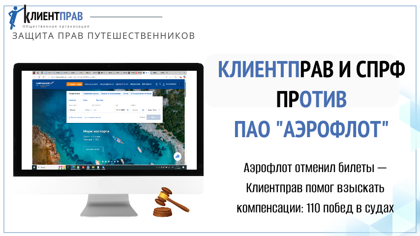 В 2023 году сотни пассажиров столкнулись с неожиданной отменой уже оплаченных авиабилетов, приобретённых на официальном сайте ПАО «Аэрофлот». Авиакомпания заявила о «технической ошибке» в тарифах и аннулировала бронирования. Несмотря на то что договоры перевозки были заключены надлежащим образом, и покупатели получили маршрутные квитанции, Аэрофлот в одностороннем порядке вернул деньги и снял бронь. ⚖️ В ответ на это Клиентправ и Союз потребителей России объединили усилия и подали 112 исков в защиту потребителей по всей стране. 📍 В исках заявлялись требования: Результат — впечатляющий: 110 из 112 дел были выиграны. И это лишь часть масштабной работы по защите прав пассажиров в России. Жительница Екатеринбурга приобрела билеты в Пхукет и обратно за 25 420 рублей. После оплаты и получения маршрутных квитанций она начала готовиться к отпуску. Однако Аэрофлот аннулировал бронь, сославшись на внутреннюю ошибку. Суд встал на сторону потребителя: 🏛️ Решение суда: «Мы проанализировали все 1