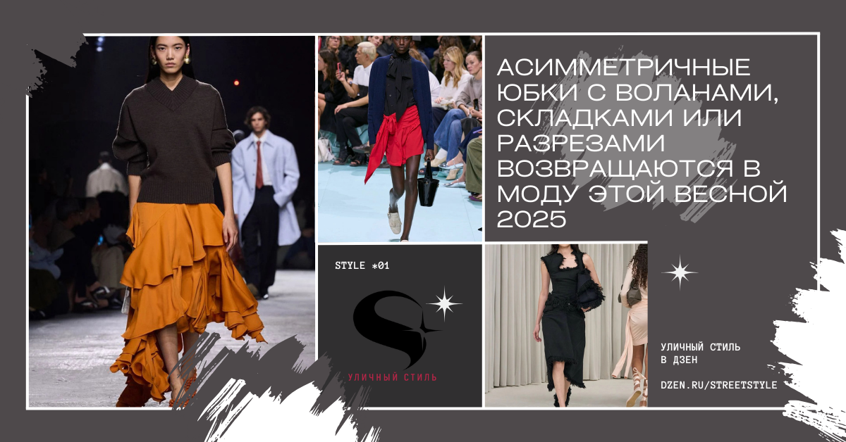 Асимметричные юбки с воланами, складками или разрезами возвращаются в моду этой весной 2025