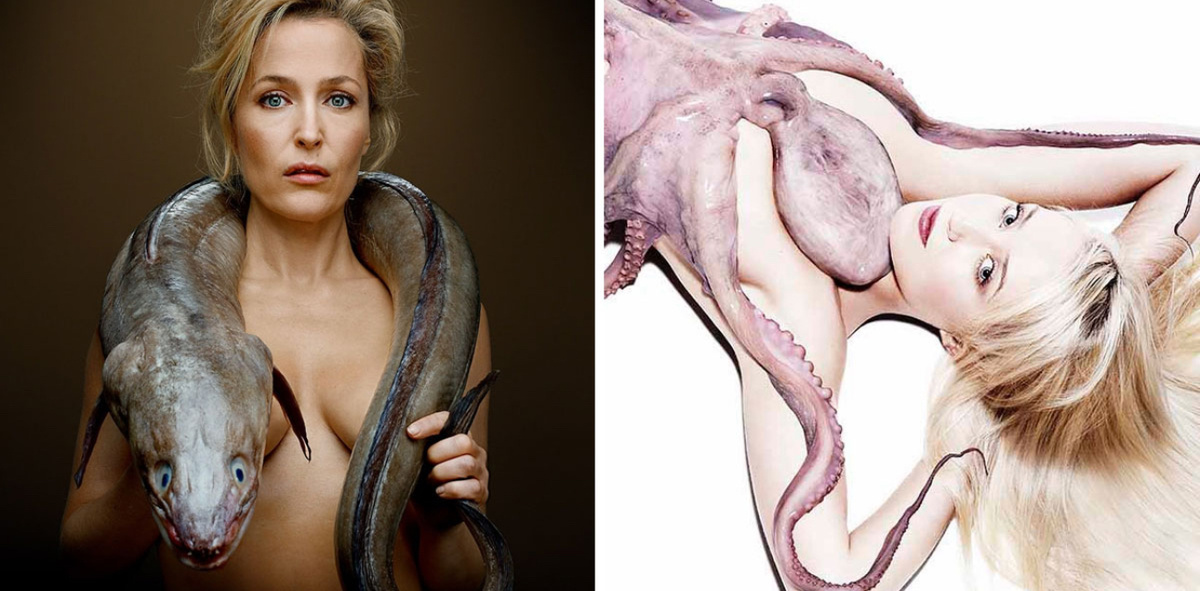 Ни для кого не секрет, что в мире остро стоит проблема загрязнения окружающей среды. Особенно это касается морей, океанов и их обитателей, которые нещадно вылавливаются и многие из них находятся уже на грани исчезновения. Фотопроект Fishlove старается привлечь внимание мировой общественности к защите водной среды на нашей планете, приглашая к фотосъемкам в обнаженном виде знаменитых людей. В фотосессии участвуют не только актеры, но и дизайнеры, предприниматели и другие известные люди. Организаторы проекта подчеркивают, что морских обитателей они не отлавливают специально для съемок, а выбирают из той партии, что уже отобрана для приготовления. Начало этому проекту было положено в 2009-м году. Сегодня вы увидите некоторые из самых интересных фотоснимков. Основатели проекта Fishlove убеждены, что только общими усилиями всей мировой общественности можно решить экологические проблемы. Наверняка Джиллиан знает еще много секретов, неведомых нам… Если кто не знает Стивена В