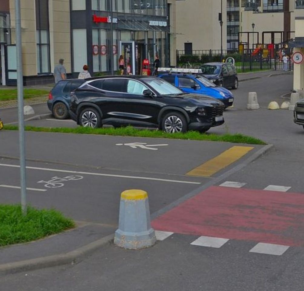 Стало интересно как выглядит эта велопешеходная дорожка на проспекте ветеранов, что мама этого мальчика не заметила разметки, может быть, подумал я, как-то незаметно это разделение обозначено?