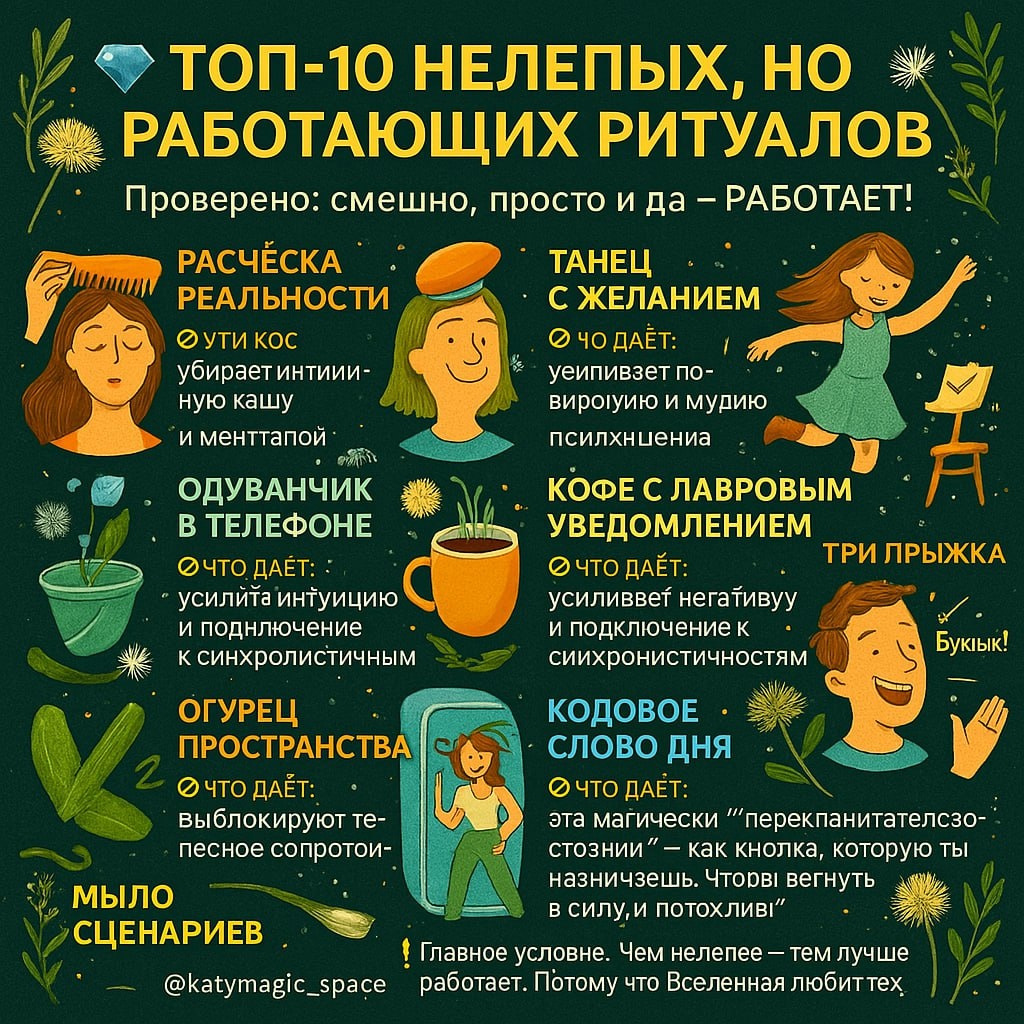 Чем нелепее — тем лучше работает. Потому что Вселенная любит тех, кто смеётся всерьёз.