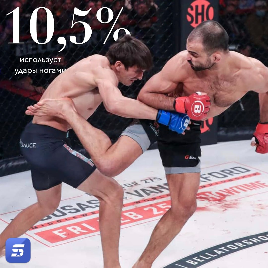 Андрей Корешков наносит 10,5% своих ударов ногами, среди них есть один точный удар, сломавший ребро 👆🏻.