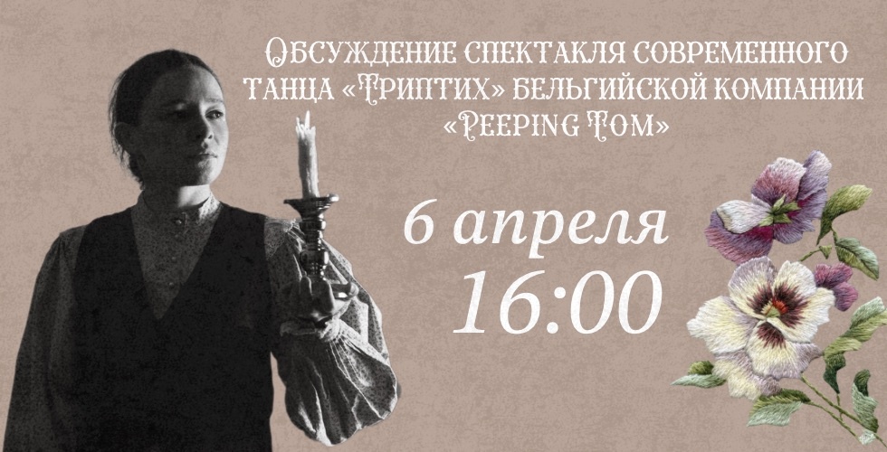 Приглашаем! 6 апреля в 16:00. Общественные собрания. Встреча 2. Обсуждение спектакля современного танца «Триптих» бельгийской компании «Peeping Tom» Спектакль состоит из трех танцевальных пьес: The missing door («Пропавшая дверь»), The lost room («Потерянная комната») and The hidden floor («Исчезнувший этаж») хореографов Габриэлы Карризо и Франка Шартье. На встрече мы посмотрим и обсудим вторую из трёх частей - The lost room. Действие разворачивается в каюте океанского лайнера и наполнено экспериментальной хореографией, сюрреализмом и саспенсом. 📍Модератор: Полина Вязовая, хореограф, режиссёр. Купить билет: 600 руб. clck.ru/3JPrUs Пушкинская карта: 400 руб. clck.ru/3JPs4k #КудасходитьТомск #АфишаТомск #ТанецТомск #Искусство ----------------------------------------------------------------------------------------- ● Ежедневно (кроме понедельников) с 10:00 до 18:00 часов.