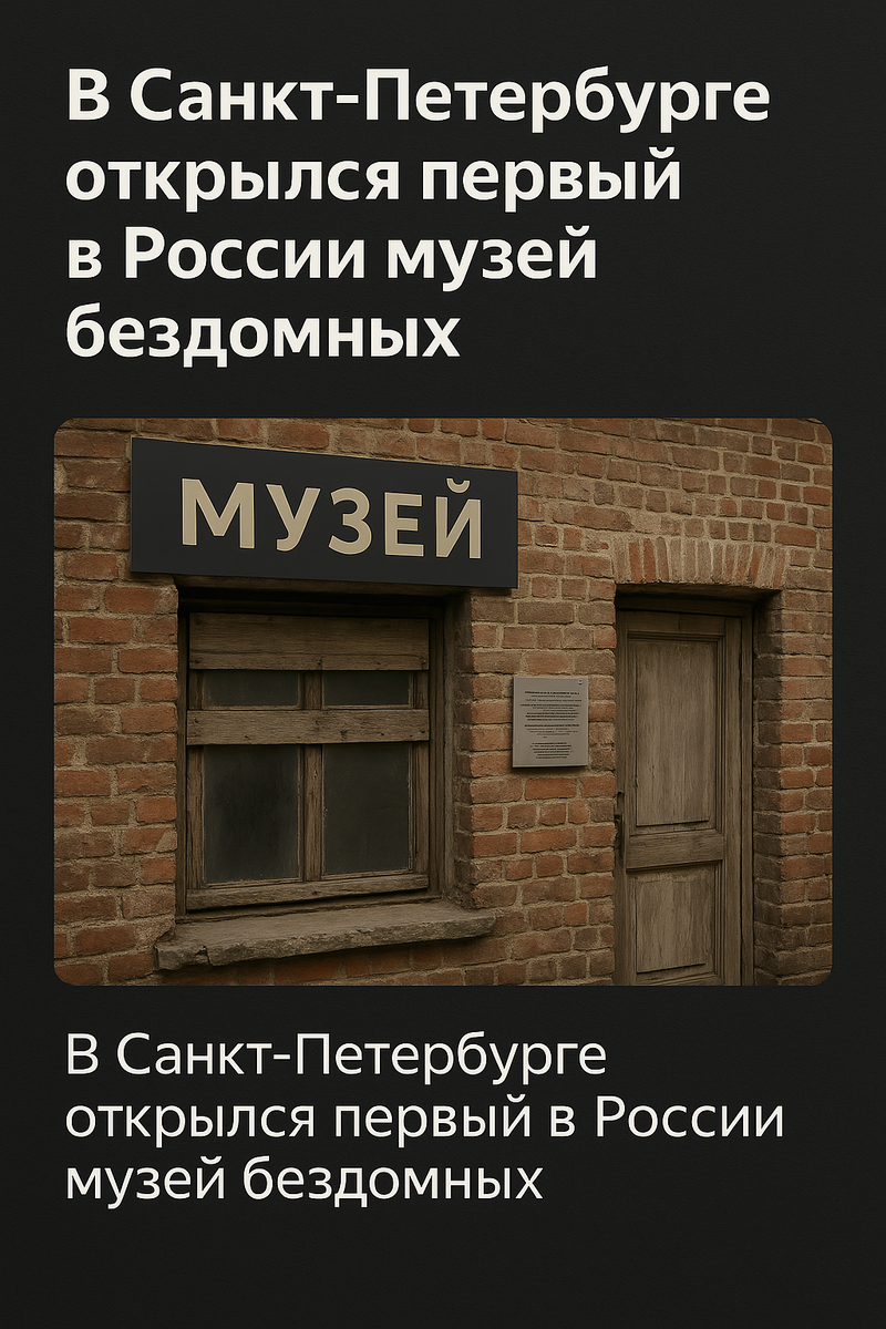 Санкт-Петербург — город, в котором архитектура может свести с ума, а тени имперского прошлого соседствуют с реальностью, от которой отворачиваются. И вот, именно здесь, среди парадных улиц и тенистых переулков, появился первый в России музей, посвящённый бездомным. Да, вы не ослышались — бездомным. Это не выставка шок-контента. Это не инсталляция в стиле “арт-провокации”. Это — настоящая попытка сделать невидимое видимым. И в этом смысле — один из самых человечных культурных актов последнего времени. Что это за музей и кто его открыл? Музей был создан при поддержке благотворительных организаций, волонтёров и людей, лично переживших опыт уличной жизни. Его основная идея — рассказать реальные истории тех, кого общество привыкло не замечать. Экспозиция размещена в небольшом, нарочно непрезентабельном помещении — со старой кирпичной кладкой, ржавыми табличками и даже запахом сырости. Здесь нет аудиогидов с голосами актёров и глянцевых брошюр. Зато здесь есть: • Одежда, в которой люд
