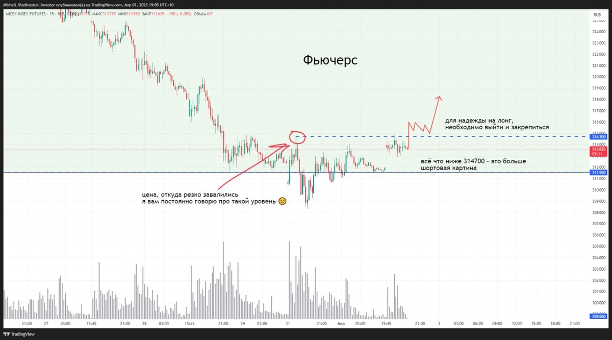 Всё что я думаю про фьючерс на Индекс МосБиржи. Расписал на скрине 😉