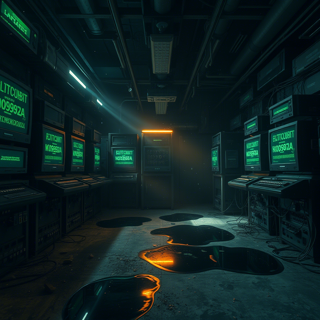 Лампы дышали неровным светом, выхватывая из темноты очертания мертвых терминалов. Воздух пах статикой и забытыми годами — как будто кто-то разрядил здесь батарею времени, и теперь всё вокруг медленно разлагалось, но не умирало.
