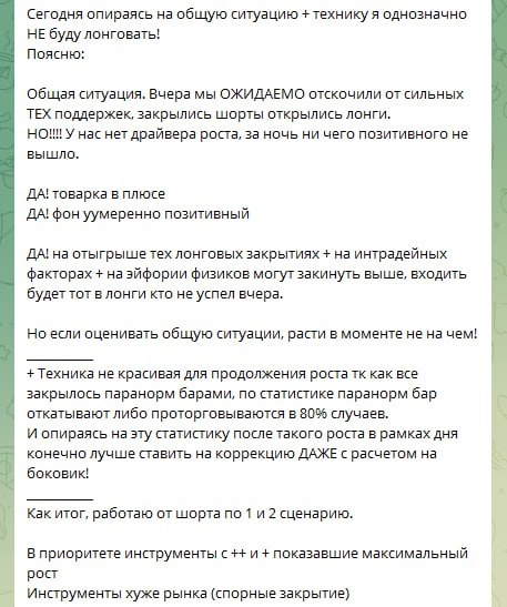 🆘Пока стоим чтобы время потом не тратить. В рамках обучения смотрим обзор. Это ежедневный обзор который выходит в закрытом ТГ канале ДО начала сессии. 1. Разбор вчерашней сессии. ТОЛЬКО ЛОНГ НА ОТСКОК. 2. План на сегодня. работа от шорта по оценки общей ситуации. + скрин с планом на день с факторами ЗА ШОРТ из закрытого ТГ канала. ____________________ ❗️Как итог ММВБ стоит целый день в боковике и ждем НОВОСТЕЙ. У нас нет факторов не за рост не за падение НО!!! После вчерашнего роста в ОЖИДАЕМОМ боковике лучше конечно же работать от шорта. Самый главный + этой сессии что логика верная!!! НЕТ ДРАЙВЕРА РОСТА!! С учетом факторов в моменте мы + - на справедливых уровнях и выше нас закинуть могут только НОВОСТИ! _____________ Ютуб👉https://youtu.be/XxQYFWY4qeQ Рутуб👉https://rutube.ru/video/private/51e6aea45ee9ea9c53806a6d71a6faba/?p=W2Jd44cZO6SDbnaFFjNnIg ПС: Один этот обзор за щеку даст любому платному курсу!!! тк он основан на живых сессиях!!!! __________ 🆘СМОТРИ ОБЗОРЫ!!! Хочешь е
