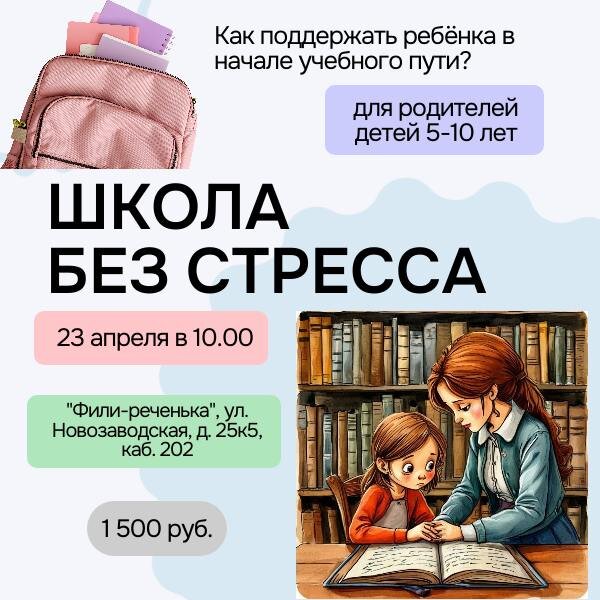 СЕМИНАР ДЛЯ РОДИТЕЛЕЙ: ШКОЛА БЕЗ СТРЕССА Школа без стресса: как поддержать ребёнка в начале учебного пути? Для родителей детей от 5 до 10 лет Спикеры: 🎤 Баталина Надежда: Логопед, эксперт по преодолению учебных трудностей, мама двух школьников 🎤 Демьянова Анастасия: коуч для родителей, психолог, мама школьника и дошкольника Школа... Всё чаще это слово вызывает у родителей тревогу, раздражение и усталость. ШКОЛА С УДОВОЛЬСТВИЕМ ЭТО РЕАЛЬНО На семинаре вы узнаете: ✓ Как подготовить ребёнка к школе эффективно (без прописей и сопротивления) ✓ 5 ключевых навыков для лёгкого обучения ✓ Что делать, если ребёнок путает буквы или не может сосредоточиться ✓ Секретные приёмы быстрой адаптации к школе ✓ Как организовать домашние задания без ссор и слёз ✓ Чтение и письмо: норма и "красные флаги" Подарки для участников: 🎁 личные экспресс-консультации от спикеров 🎁 2 тематических гайда 🎁 большие скидки на услуги спикеров Дата: 23 апреля Время: 10.00 - 14.00 Место: логопедическая студия "