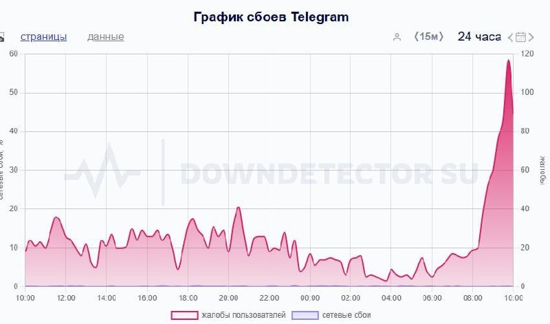⚡Также сегодня с утра сбоили мобильное приложение и десктопная версия Telegram. Поступили сотни жалоб на то, что не удается открыть программу, не приходят сообщения, не загружаются медиа, есть проблемы в использовании криптокошелька в сервисе. Больше всего жалоб было из Тверской области (8%), Нижегородской области (4%), Москвы и Московской области (3%), Санкт-Петербурга и Ленинградской области (3%).
