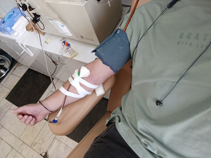 Уже 17й раз за год сдал донорскую плазму крови. Как это происходит. Пришел на станцию переливания. Их в Челябинске две. Я хожу в ту, где сдают плазму. Записываться нужно заранее. Минимальный перерыв между сдачей плазмы должен составлять 14 дней. Но желающих гораздо больше. И по факту я хожу один раз в 3 недели. Иногда раз в месяц. На входе в регистратуре заполняю бланк. Далее гардероб. Раздевшись иду на мед.осмотр. Берут кровь из пальца, меряют гемоглобин. Давление. Спрашивают чем питался последние сутки. Диета важная часть подготовки. Нужно много пить воды и нельзя есть за сутки ничего жаренного, жирного, соленого и мясного. Я для себя сформировал комфортное меню. Ем только гречу и сырые овощи. Перед сдачей обязательно нужно выпить чай с печенькой. Для этого организовн буфет. На столах есть печеньки и приносят чай. Иду на сдачу. Ложусь на кушетку. Всё. 40 минут можно отдыхать. Собранную кровь в центрифуге разделяют на компаненты. Забирают плазму, а остальные компоненты вам возвращают.