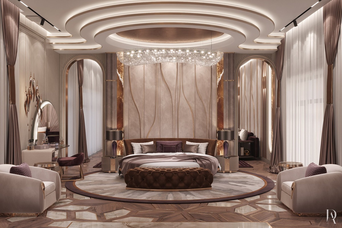 Сегодня спальня класса люкс часто совмещает в себе несколько функций: это и место для отдыха, и будуар, и приватная мини-гостиная. Создать стильное мультифункциональное пространство с комфортной атмосферой и яркой индивидуальностью помогает продуманная планировка и оригинальным дизайн.