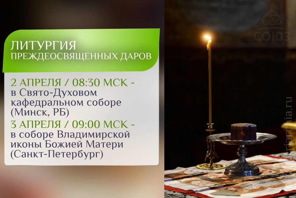 Прямые трансляции литургии Преждеосвященных Даров 2 и 3 апреля