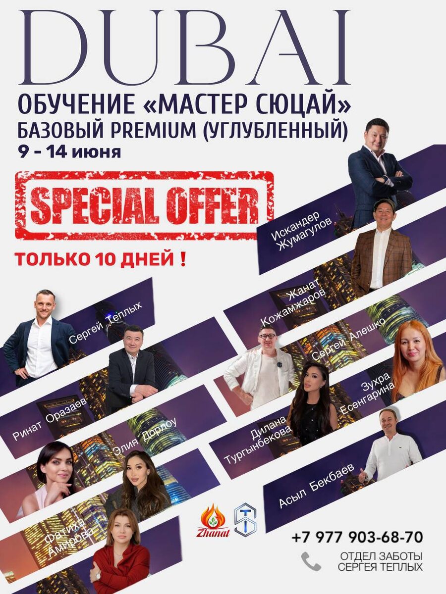 🚀ОСТАЛОСЬ 4 ДНЯ 🚀СПЕЦПРЕДЛОЖЕНИЕ НА ОБУЧЕНИЕ В ДУБАЕ ⚡️ ❗️До 4 апреля вы можете пройти Базовое Premium углубленное обучение в Syucai Training Institute за 4200$ вместо 5000$ 🇦🇪 Дата обучения: с 9 по 14 июня + 2,5 месяца online 🔥 Выгодное предложение на обучение в Дубае🔥 ✅ Прокачайте свои навыки на одной из лучших площадок в Дубае. У вас есть возможность получить углубленное обучение по науке Сюцай и присоединиться к базовому потоку. ✅ Продуманный график занятий: offline обучение с 9 по 14 июня, а затем 2,5 месяца онлайн-обучения под руководством ТОП — тренеров SYUCAI TRAINING INSTITUTE ✅ Диплом от Департамента Образования Дубая: возможность получить сертификат, котирующийся во всем мире. ✅ Экзамен на понимание знаний: прохождение экзамена для подтверждения ваших знаний в конце обучения. ✅ Уникальная методика Жаната Кожамжарова: включение в обучение трех сеансов по методике «Огненный цигун» и мощный состав тренеров и преподавателей ✅ VIP группа: обучение будет проходить в