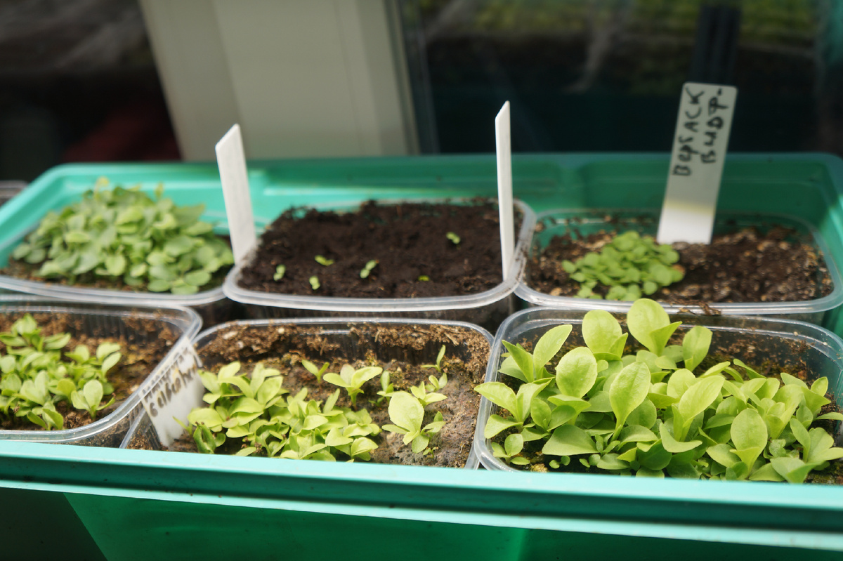 И вот мы в теплице. В таких количествах на стеллажи и окна, конечно уже ничего не влезает. После пикировки через пару дней все выношу туда.