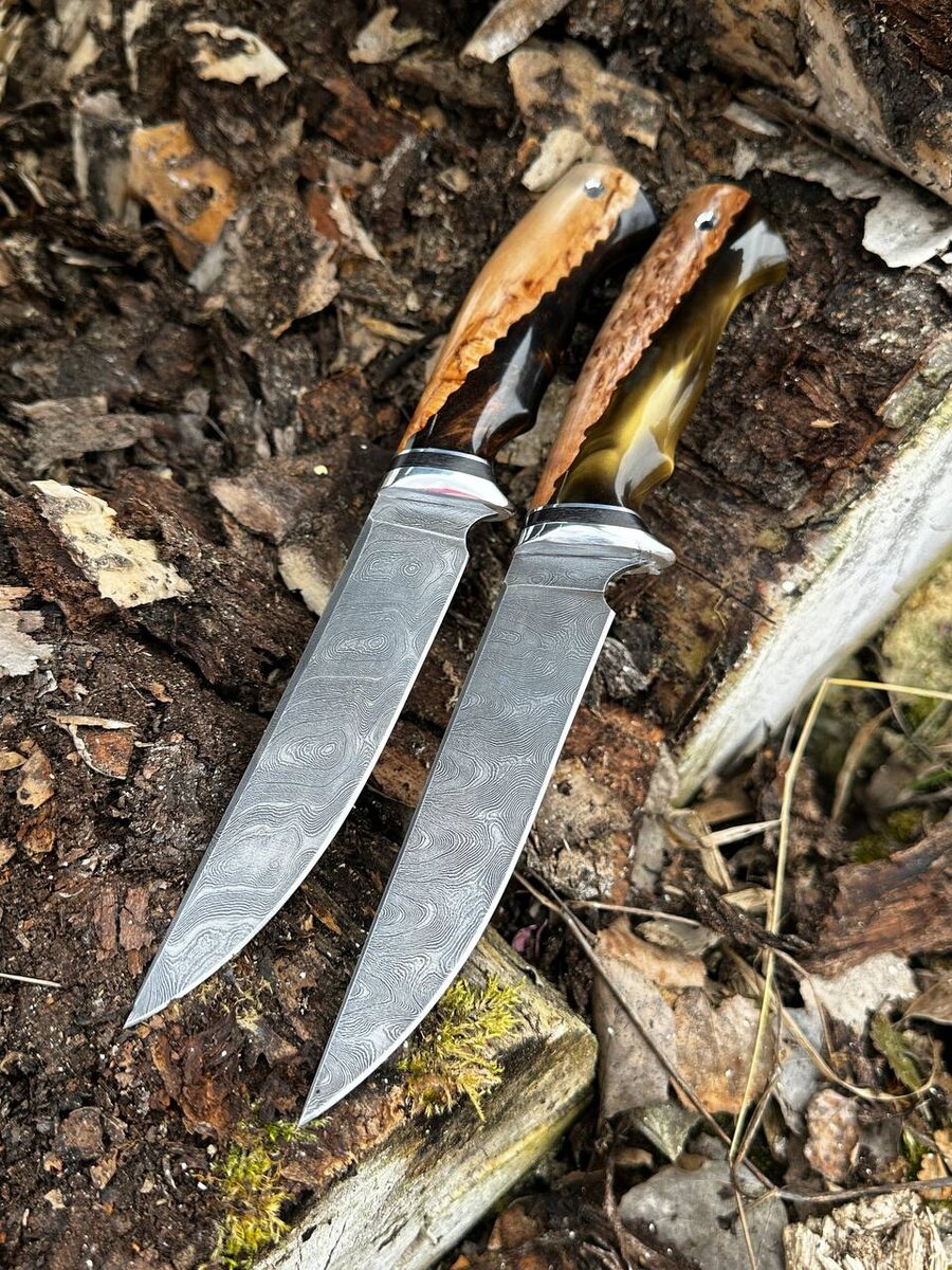 Готов универсальный нож «Байкал» из дамасской стали в 950 слоев.