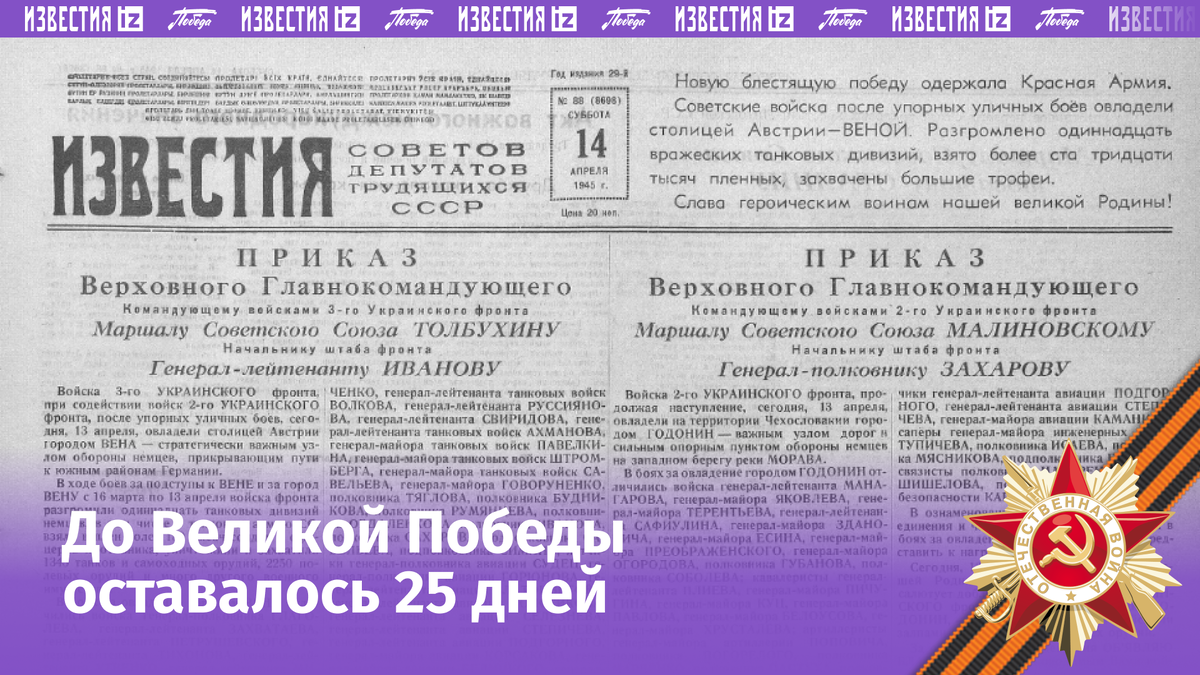 Выпуск газеты «Известия» от 14 апреля 1945 года читайте в цифровом архиве с умным поиском.