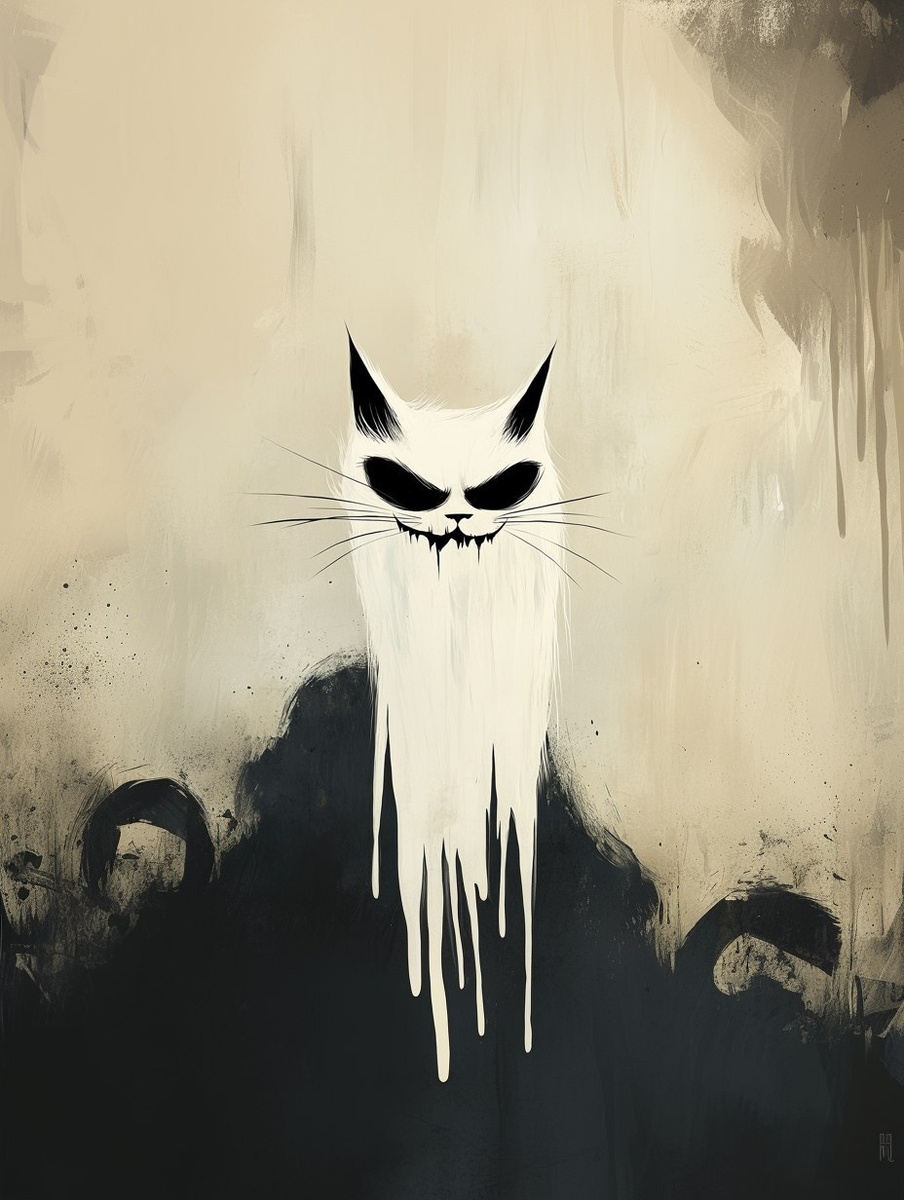 Создано на основе запроса: an illustration of the goblin king cat, minimal background, melting face, hi-res