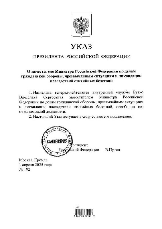 Недавно стало известно о значительном изменении в структуре руководства Министерства по чрезвычайным ситуациям Российской Федерации. Генерал-лейтенант внутренней службы Вячеслав Бутко, который до этого занимал должность начальника Академии Государственной противопожарной службы МЧС России, был назначен на новый важный пост - заместителя главы МЧС РФ. Этот указ подписал лично Президент России Владимир Путин, что подчеркивает важность и значимость данного назначения. С этого момента Вячеслав Бутко будет выполнять свои обязанности в новой роли, направленной на укрепление системы безопасности страны и улучшение работы ведомства.