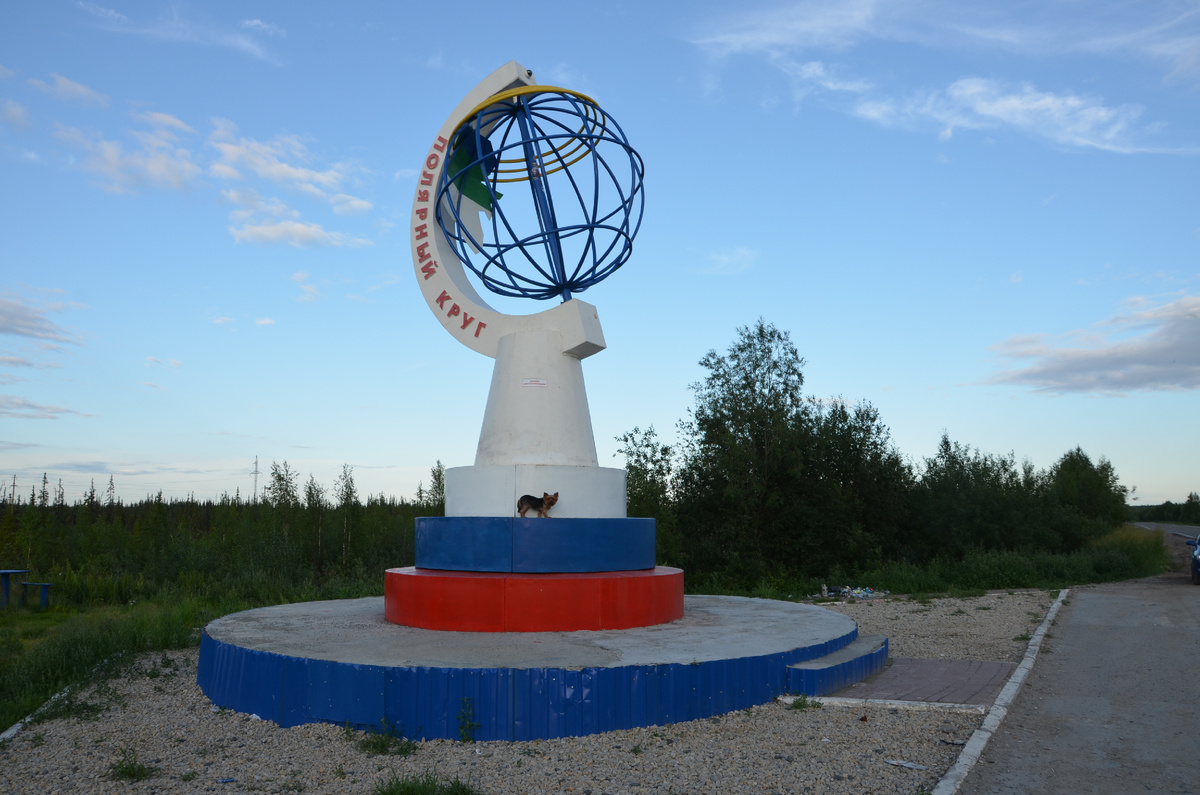 Где-то посередине этого отрезка дороги стоит такая стела. Кто читал последние две статьи про г. Усинск, то уже знает что мы окажемся там только завтра.