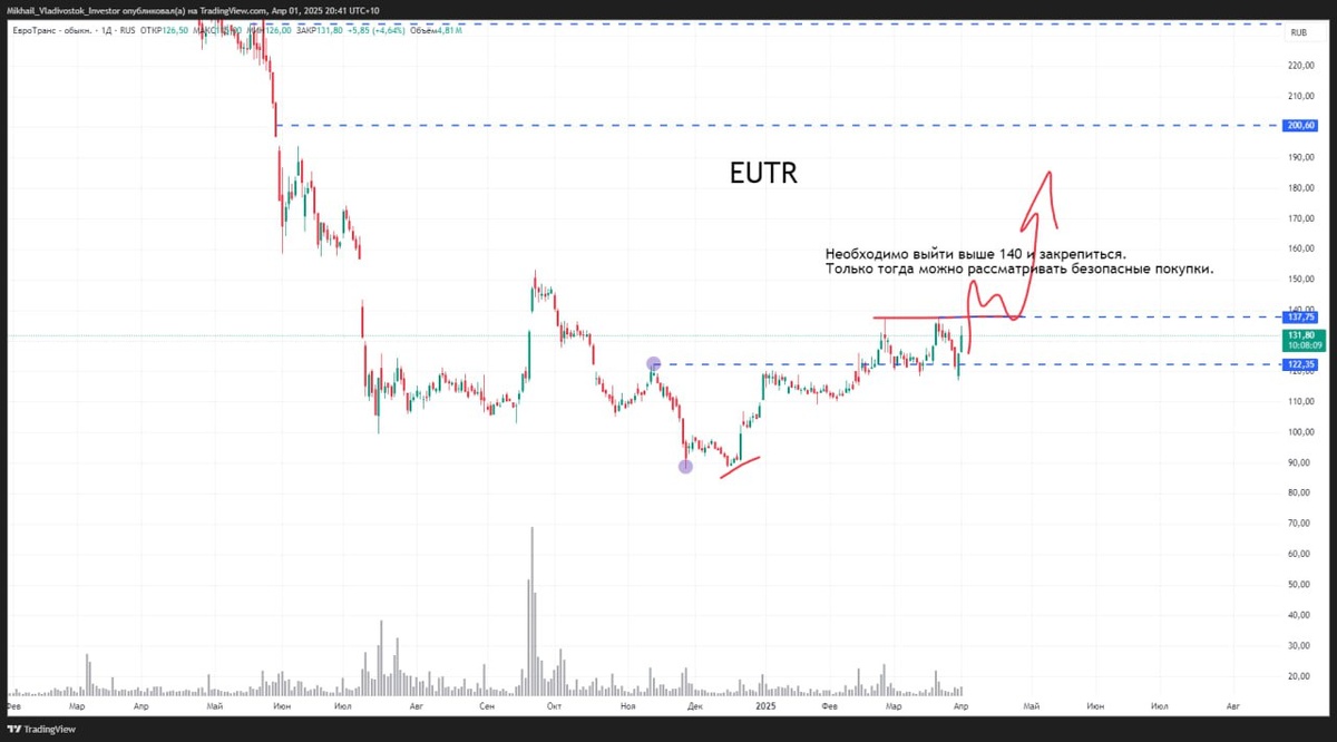 Необходимо выйти выше 140 и закрепиться. Только тогда можно рассматривать безопасные покупки.