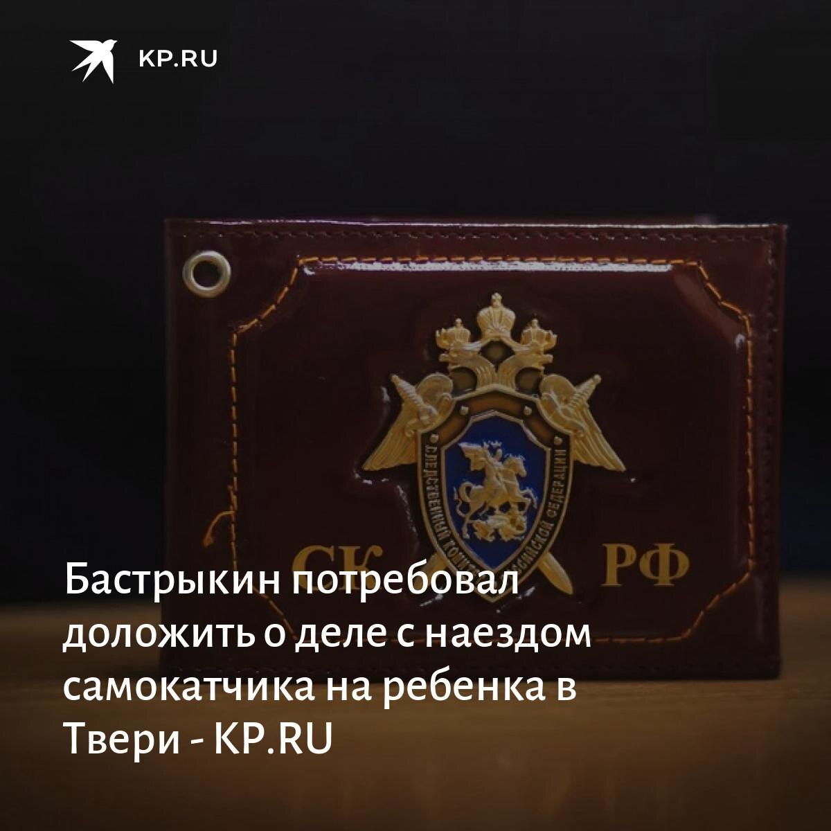 Бастрыкин потребовал доложить о деле с наездом самокатчика на ребенка в Твери Председатель Следственного комитета Российской Федерации Александр Бастрыкин поручил руководителю СУ СК России по Тверской области Альберту Кизимову доложить о ходе расследования уголовного дела, возбужденного по факту травмирования малолетнего ребенка в Твери. По данным, появившимся в социальных сетях, несовершеннолетний, управляя электросамокатом, совершил наезд на 4-летнего мальчика, в результате чего ребенок был госпитализирован. Следственными органами СК России по Тверской области по данному факту возбуждено уголовное дело по статье 268 УК РФ (нарушение правил, обеспечивающих безопасную работу транспорта). ✏️ «КП»-Тверь» | Подписывайтесь