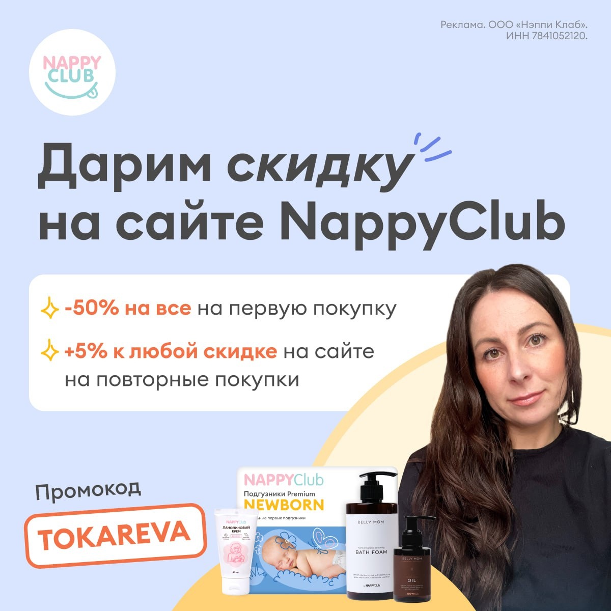 А это уже не шутка 😉 Скидка 50 % на первый заказ на сайте https://nappyclub.ru/