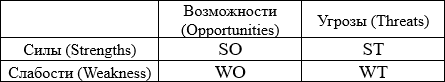 17.На рисунке ниже показана структура SWOT-матрицы. В каком ее поле формируются возможные стратегии – «главные направления стратегического развития организации»? Ответ аргументируйте.