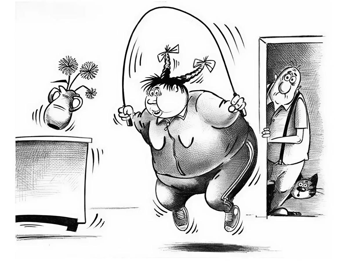 Понятно, что на пути к стройности и сбросу веса придется пережить немало курьезных случаев. Каких именно – покажет подборка карикатур от разных авторов. Мастера сюжетов передали множество жизненных ситуаций.