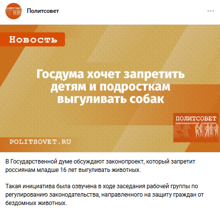 В соцсетях пишут, что детям младше 16 лет законодательно запретят выгуливать животных.