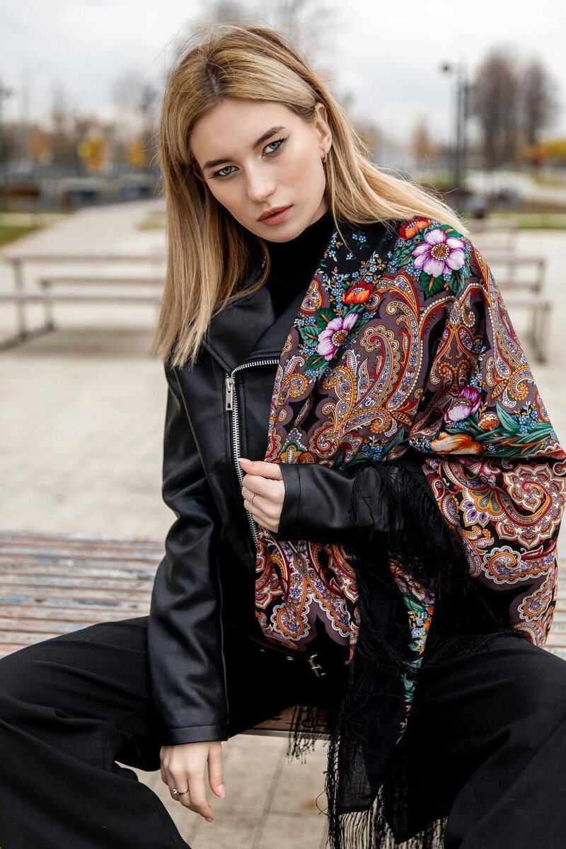 Развеем мнение, что павловопосадские платки носят только под классическую одежду. ⠀ 🔎 На фото продемонстрировали, как самый актуальный образ (косуха и грубые ботинки) может гармонично сочетаться с павловопосадским платком. Тренды и классика = интересная пара👍. ⠀ 📌Экспериментируйте, пробуйте разные варианты повязки и сочетаний. Платок – универсальный аксессуар, который может обыграть любую вещь. —————— Платок шерстяной с шелковой бахромой "Летнее чудо" Артикул: 1885, вид 18 Размер: 146x146 см Художник: Фаворитова Елена Купить: www.platki.ru, официальные розничные магазины «Павловопосадские платки» БЕСПЛАТНАЯ ДОСТАВКА —————— 🎁 Не можете определиться с подарком или боитесь ошибиться с выбором? Подарочный сертификат – лучшее решение. —————— 💬 Есть вопросы? Свяжитесь с операторами нашего call-центра. —————— *Все права на фотографии и видео принадлежат ОАО «Павловопосадская платочная мануфактура». Размещение их на сторонних ресурсах запрещено.