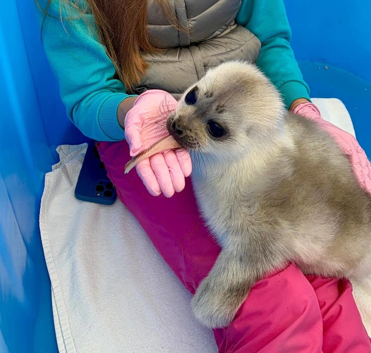 Маленькую балтийскую нерпу, которую нашли первой в этом году, постепенно переводят на рыбу, сообщили сегодня в телеграм-канале Фонда друзей балтийской нерпы. «Она и балтийский мальчишка по характеру совершеннейшие ребёнки, в отличие от поступивших позже других, более взросло себя ведущих нерпулек», – говорится в сообщении. Как отмечается, нерпа по-прежнему хочет ласки и общения, поэтому с такими животными обязательно нужно проводить время. Ранее «Петербургский дневник» сообщал, что в Сосновом Бору спасли маленькую балтийскую нерпу.