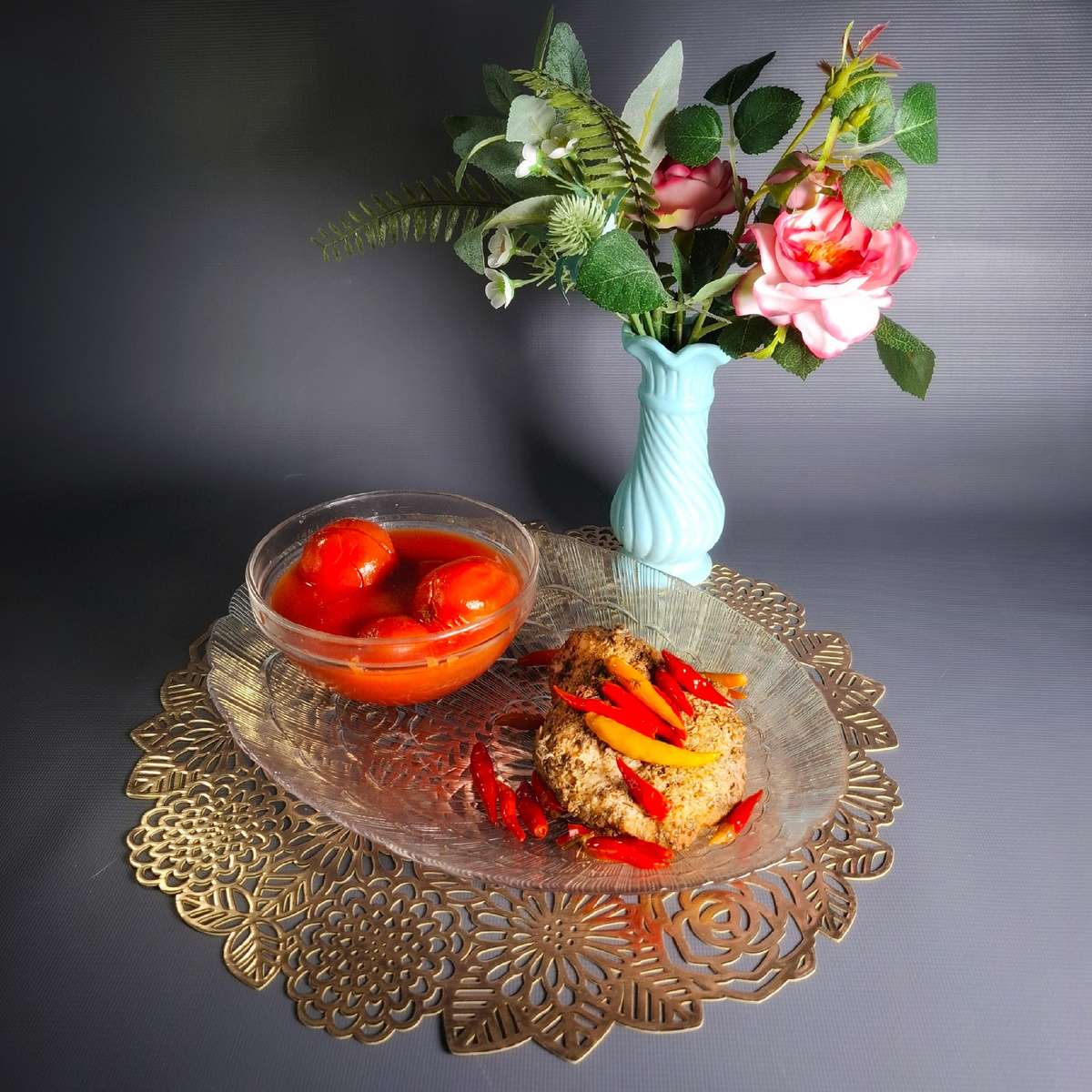 Потом была запеченная куриная грудка с консервированными томатами из Чижика - доедала оставшиеся пол-банки томатов. Заодно и перчик уже пора доесть, так как он стоит в холодильнике очень давно. Выгодная консерва))