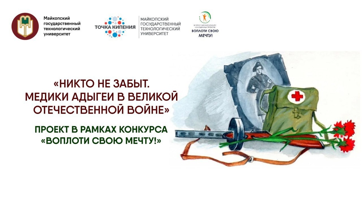 Студенты-медики МГТУ рассказывают о подвигах медицинских работников Адыгеи в годы Великой Отечественной войны. Проект "Никто не забыт. Медики Адыгеи в Великой Отечественной войне" призван собрать воедино всю информацию о подвигах врачей и их вкладе в Победу. Многие данные утеряны, но студенты стоматологического факультета МГТУ создают электронный архив, в котором будет собрана и систематизирована история подвигов медработников в годы войны. Архив доступен на сайте denpobedamgtu.tilda.ws/. Студенты приглашают объединиться и сохранить память о героизме наших земляков. Присоединяйтесь к проекту и расскажите свою историю.