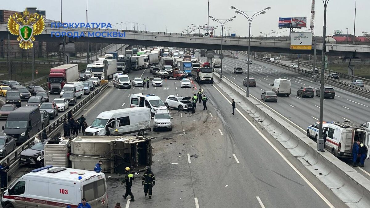 Прокуратура взяла на контроль расследование причин аварии на 24-м километре МКАД в Москве.