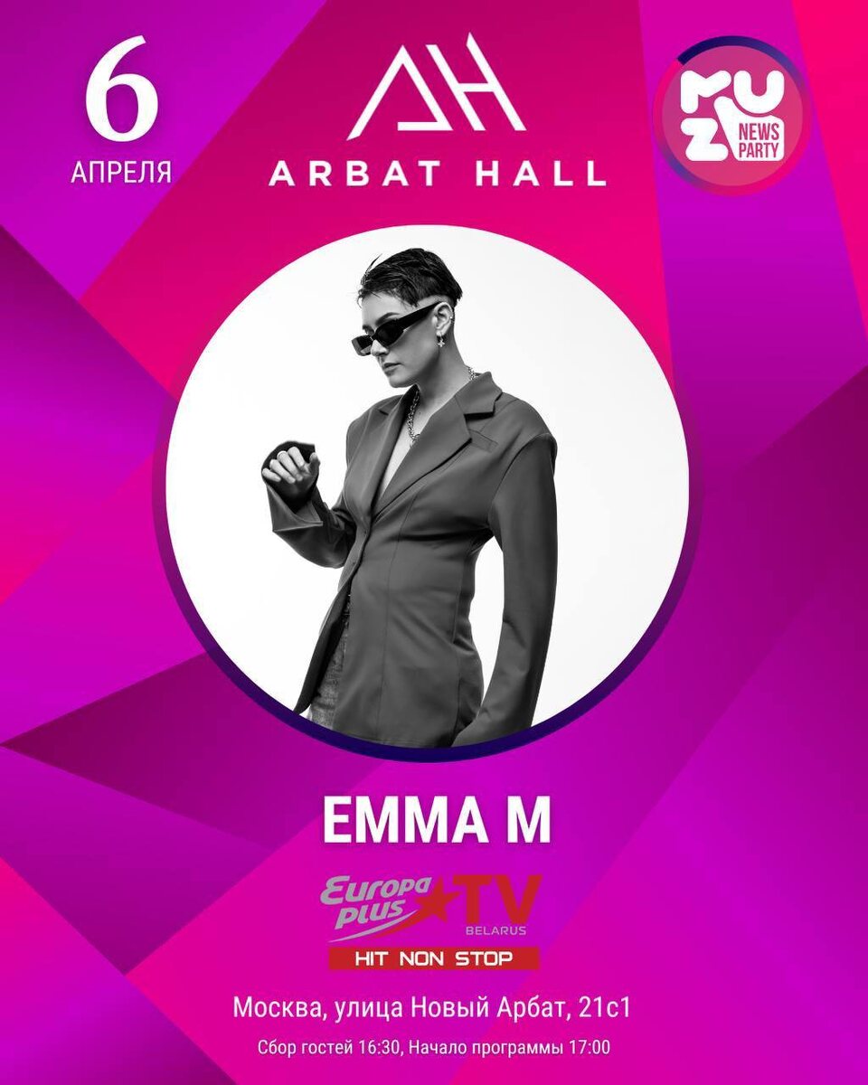 EMMA M HA MFFRUSSIA XI СЕЗОНЕ! 6 апреля на сцене MFFRUSSIA XI B Arbat Hall выступит ЕММА М - яркая певица с уникальным тембром и харизмой. Её творчество сочетает в себе искренность, эмоциональность и современные музыкальные тенденции. Не упустите возможность насладиться живым выступлением!