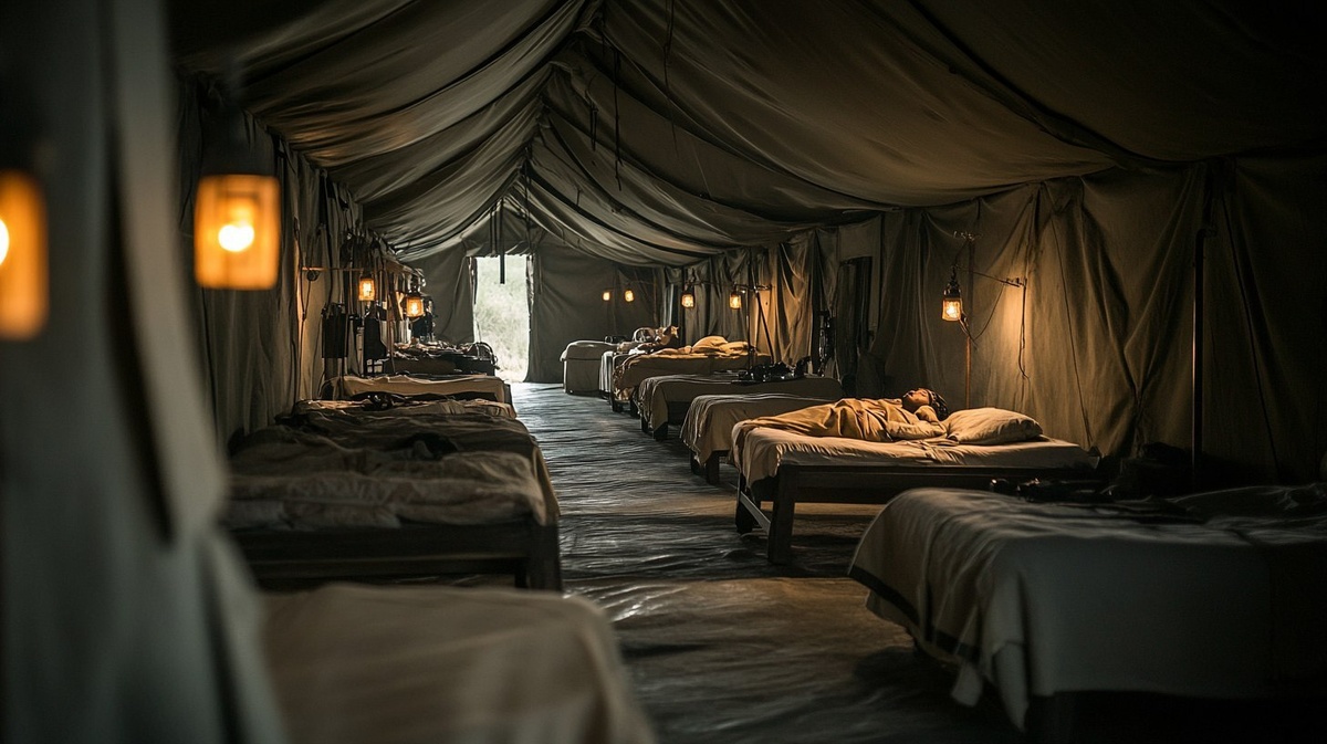 Создано на основе запроса: In a quiet corner of southern Italy, beneath the heavy clouds of a world at war, stood a field hospital where pain and hope walked side by side. The air smelled of medicine, damp earth, and memories no one dared to forget. It was there, among rows of worn-out beds and flickering lanterns, that Lieutenant Inés Ramírez --- Автоперевод: В тихом углу южной Италии, под тяжелыми облаками мира на войне, стояла полевая больница, где боль и надежда шли бок о бок. Как тебе изображение? 🤔 https://dzen.ru/id/65c0c65c86e4f837c27b24d7 #ИИ #AI #нейросеть #midjourney #art