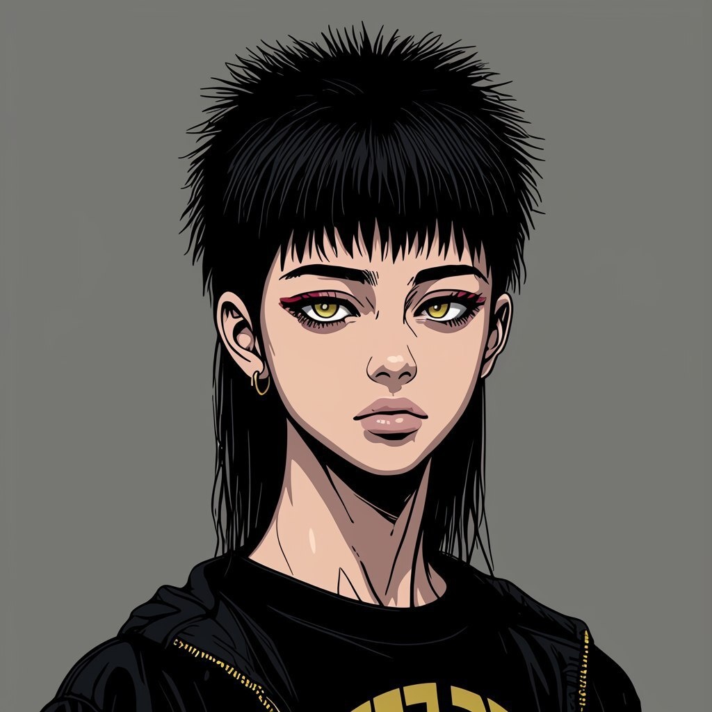 Создано на основе запроса: Headshot portrait of a young woman with slender eyes against a gray background, Katsuhiro Otomo - Akira style --- Автоперевод: Портрет молодой женщины с тонкими глазами на сером фоне, Кацухиро Отомо - Стиль Акира Классно вышло? 🤔 https://dzen.ru/id/65c0c65c86e4f837c27b24d7 #ИИ #AI #нейросеть #midjourney #art