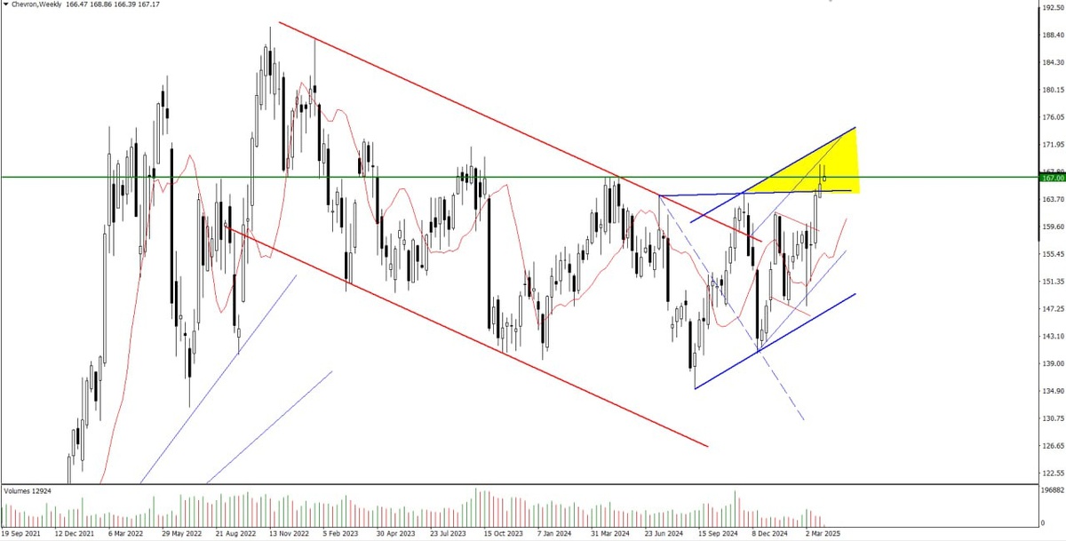 Снижение цен на нефть и слабая финансовая отчётность Chevron создают дополнительные риски для акций компании. Ястребиная политика ФРС и возможное замедление мировой экономики также давят на энергетический сектор. В случае дальнейшего падения нефти давление на котировки CVX может усилиться.