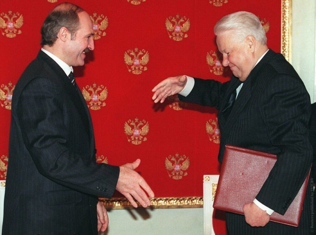 После чудовищного унижения в Югославии и серии войн на Северном Кавказе правительство Ельцина все-таки отстроилось от американцев и попыталось проводить самостоятельную линию. Но самолет Примакова развернулся над Атлантикой только в 1999 году, а выиграть выборы Ельцину нужно было в 1996 и с рейтингом около 5%. На тот момент это была самая грязная и самая проплаченная американцами кампания в СНГ, потому что те, как огня, боялись Зюганова и восстановления Советского Союза. Расхваленный рынок оказался хаосом, и народ уже сам хотел обратно к порядку — поэтому американцам надо было продать людям хоть что-то, кроме рок-концертов и пьяного танцующего президента. Поэтому на движение Ельцина и Лукашенко в сторону Союза до поры до времени смотрели сквозь пальцы.
