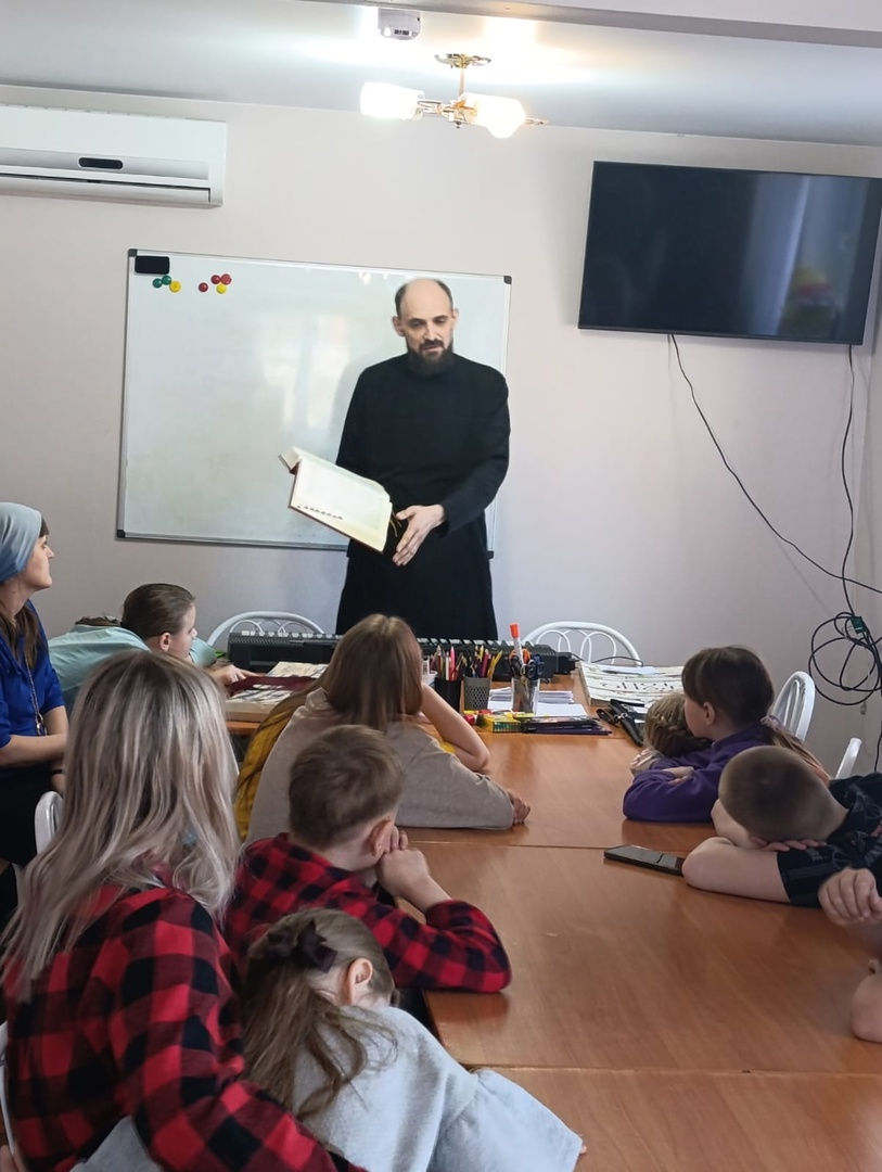 23 марта 2025 года в храме Покрова Божией Матери г. Калтана состоялось мероприятие, посвящённое Дню православной книги. С воспитанниками воскресной школы побеседовал катехизатор храма Александр Ворочек, который рассказал ребятам об истории книгопечатания и продемонстрировал царский вариант Библии на церковнославянском языке объемом около 1800 страниц. Особенно заинтересовала детей хронологическая карта Всемирной истории от 300 года, ребята смогли увидеть взаимосвязь известных им исторических имен и дат. В форме викторины по пройденным книгам Библии дети далее закрепили свои знания и получили за это сладкие призы. Также дети продолжили составление книги «Путь к Пасхе» иллюстратора Ирины Ионитис: в каждое воскресенье Великого поста ребята изучают, чему посвящена неделя, разукрашивают и моделируют соответствующую страницу книги. Все части будут соединены к Пасхе, так получится книга-памятка о Великом Посте.